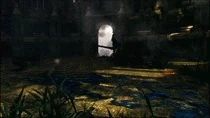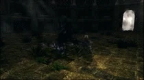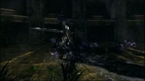 When Oolacile became threatened by the Abyss created by Manus, Artorias and his wolf companion, Sif, arrived there in an attempt to save Oolacile and rescue the abducted Princess Dusk.[6] However, the two were overwhelmed, and Artorias sacrificed himself to protect Sif using his Cleansing Greatshield, erecting a barrier around the young wolf.[7] Swallowed by the Dark, he became corrupted along with his already-cursed sword.[8] He was then laid to rest by the Chosen Undead after encountering them in the colosseum of Oolacile.