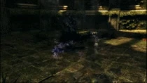 Activates in intervals after approximately 20% of his total health is reduced. After rolling away he will slowly build up dark magic energy, presenting ample time for retaliation, potentially staggering him, or to apply augmentations to one's weapon or self. If the player does not stagger him he will release an explosion that does Magic Damage in a mid-ranged area of effect all around him. Artorias' attack speed, area-of-effect and damage are enhanced for a limited time afterwards. These effects can stack.
